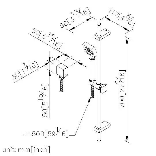4.Chất liệu của vòi sen cầm tay, giá đỡ và đầu nối nguồn trên tường là đồng thau mạ crom đạt tiêu chuẩn ASTM-SC2.