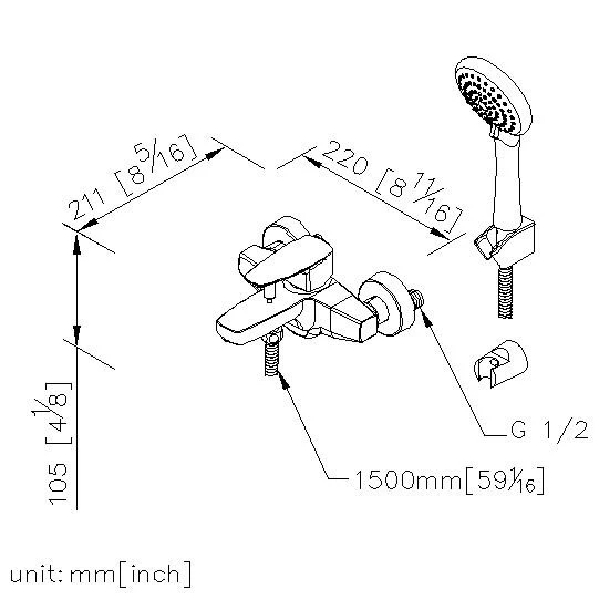 4. Ren của đầu cấp nước trên tường phù hợp với G 1/2, R 1/2, 1/2 PT, 1/2 NPSM và 1/2 NPT.